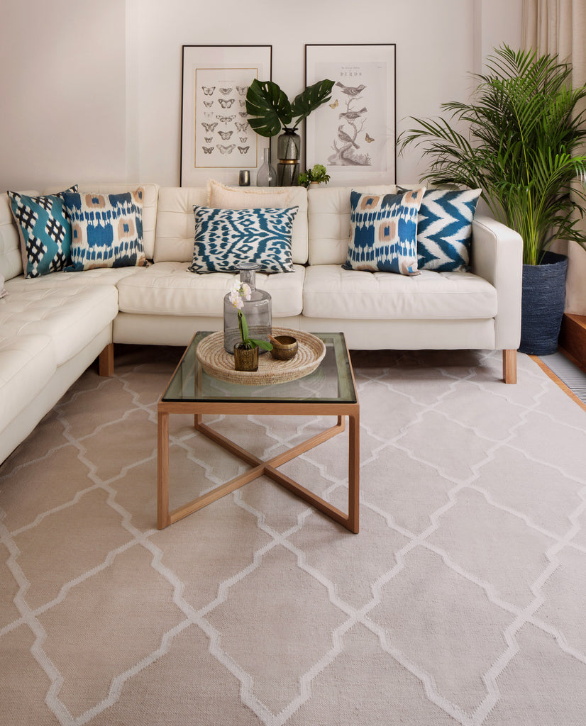 We use Tibetan-style knotting in our hand-knotted rugs which is a speciality of Nepal. In India, our weavers embrace innovation and produce flatwoven, handloom, and hand-knotted rugs in almost any fibre including wools, silks, linens and our /re/PURPOSE PERFORMANCE fibres. For more details on both click here.