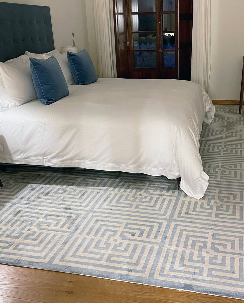 We use Tibetan-style knotting in our hand-knotted rugs which is a speciality of Nepal. In India, our weavers embrace innovation and produce flatwoven, handloom, and hand-knotted rugs in almost any fibre including wools, silks, linens and our /re/PURPOSE PERFORMANCE fibres. For more details on both click here.