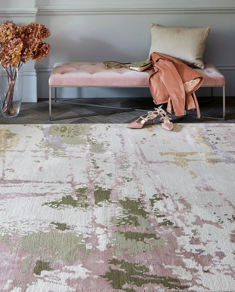 Hand-knotted Himalayan wool with bamboo silk (100 knots per square inch); also available in /re/PURPOSE PERFORMANCE fibres