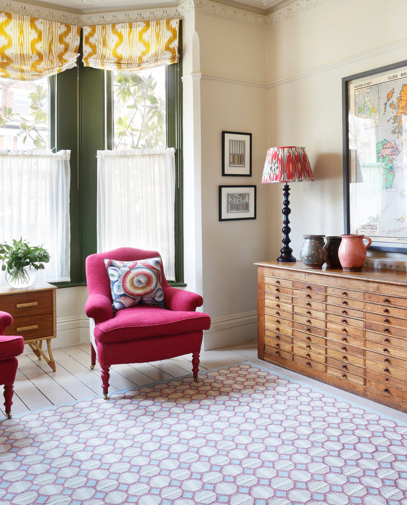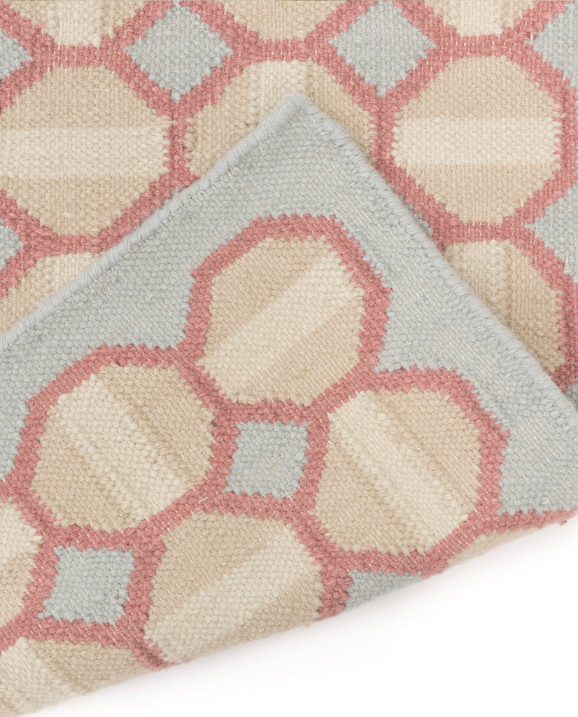 Borrowing from the clean-lined geometry of the international code of signalling flags, this small-scale motif complements a range of interior schemes and has been created in a selection of soft tones for an elegant effect.