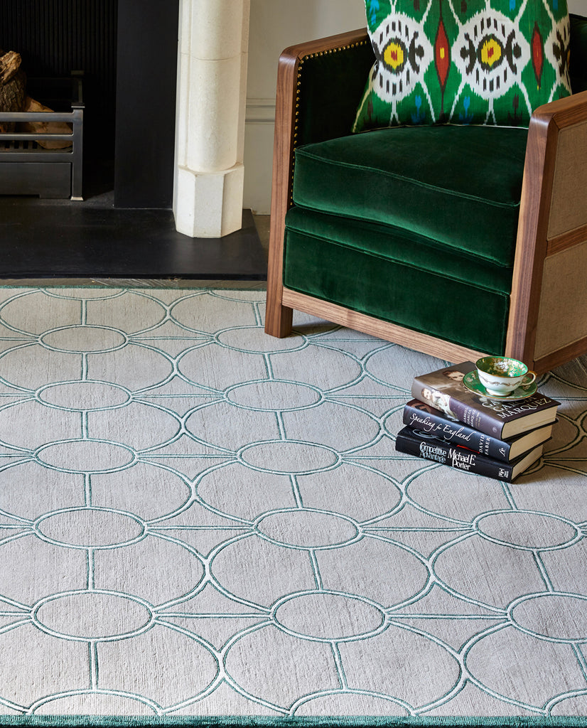 Our Gatsby design was inspired by the geometric grandeur of round Art Deco windows. Crafted in hand-spun Himalayan wool and luxurious bamboo silk, it is the perfect addition to an elegant interior scheme.