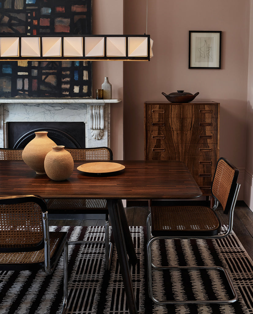 The mid-century mood of our Malibu rug evokes the elegant glamour of Hollywood starlets residing on the Californian coast. An ikat stripe and contrasting grid pattern are repeated for a timeless yet contemporary effect.